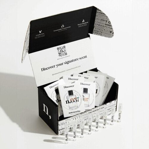 - Start with the Best Seller Sampler: Purchase the sampler, which includes 8 of our expertly crafted fragrances, allowing you to explore the full Noteworthy collection.
