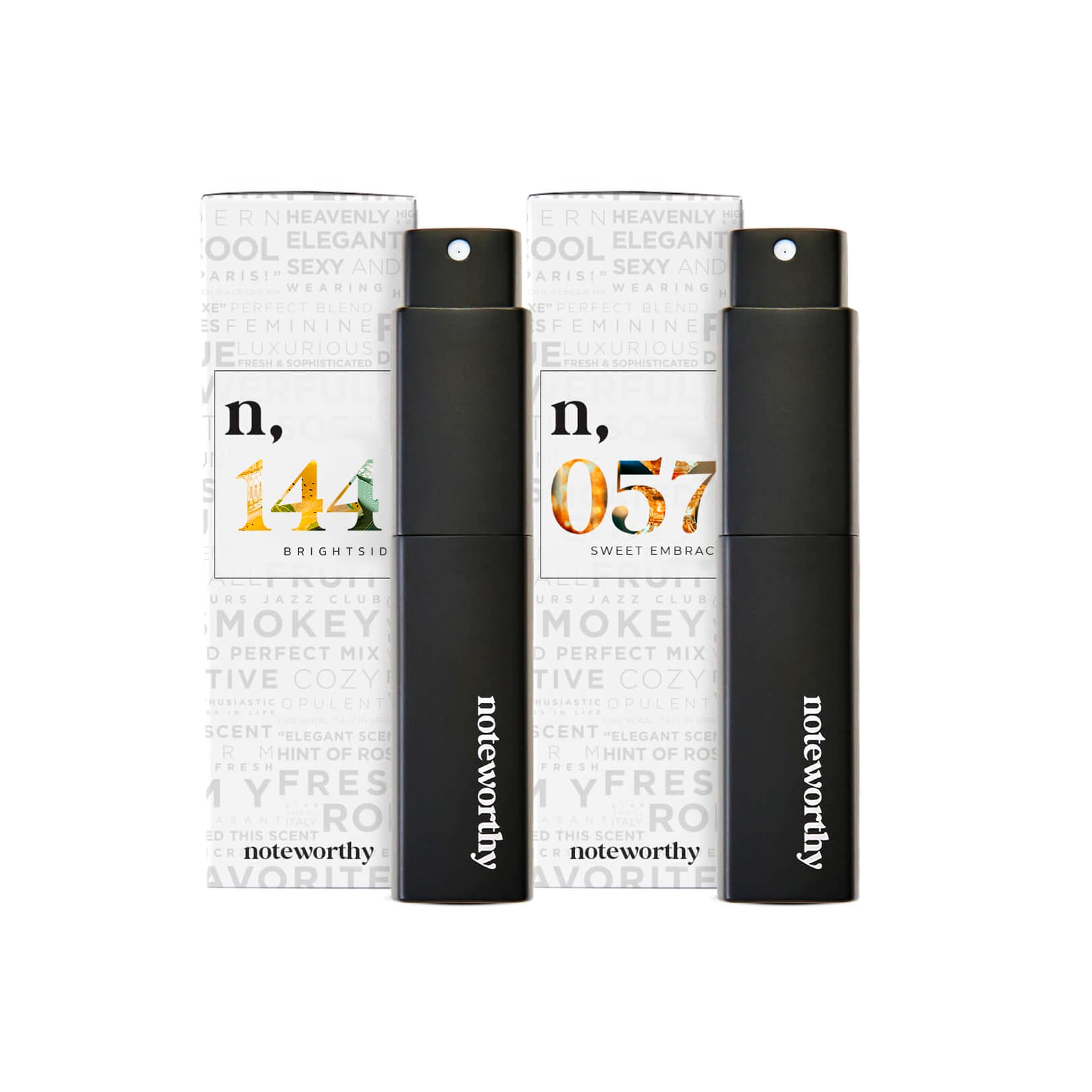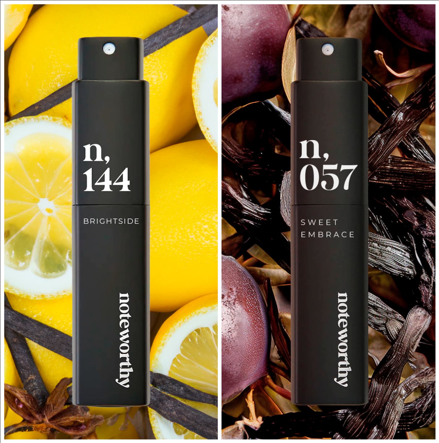 Discover the perfect pairing with our Sweet Delight Duo — a travel spray set featuring two of our most beloved fragrances: n, 144 – A sparkling burst of Italian citrus, softened by lemon blossom and warm woods. Bright, playful, and effortlessly elegant. n, 057 – A creamy blend of vanilla, passionfruit, and musk. Smooth, addictive, and a true feel-good fragrance.